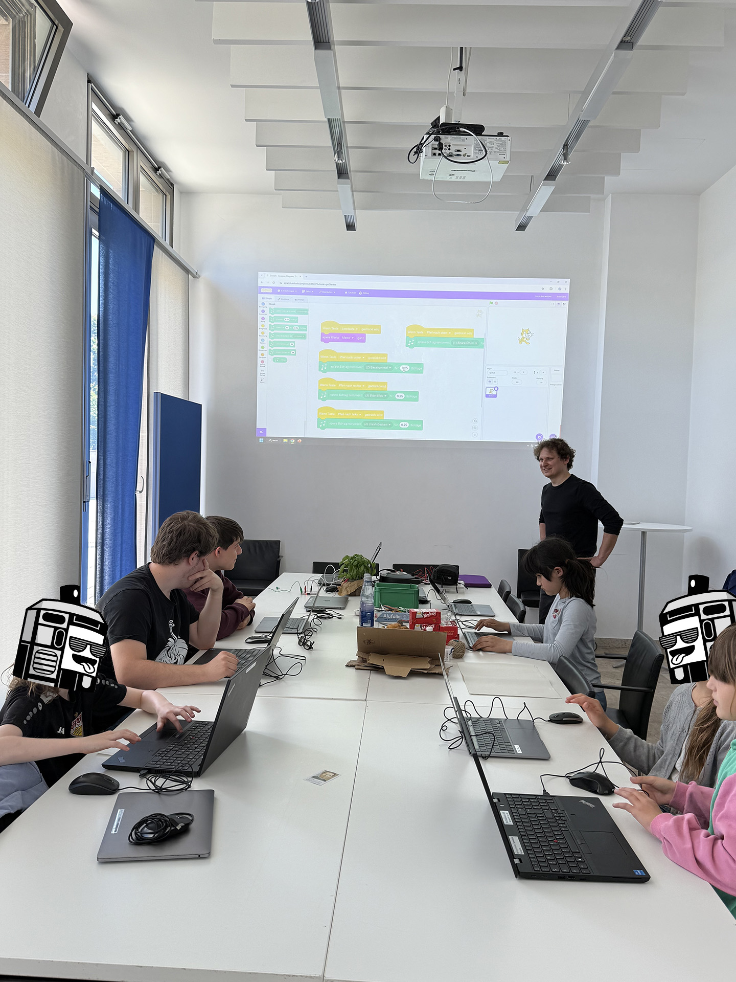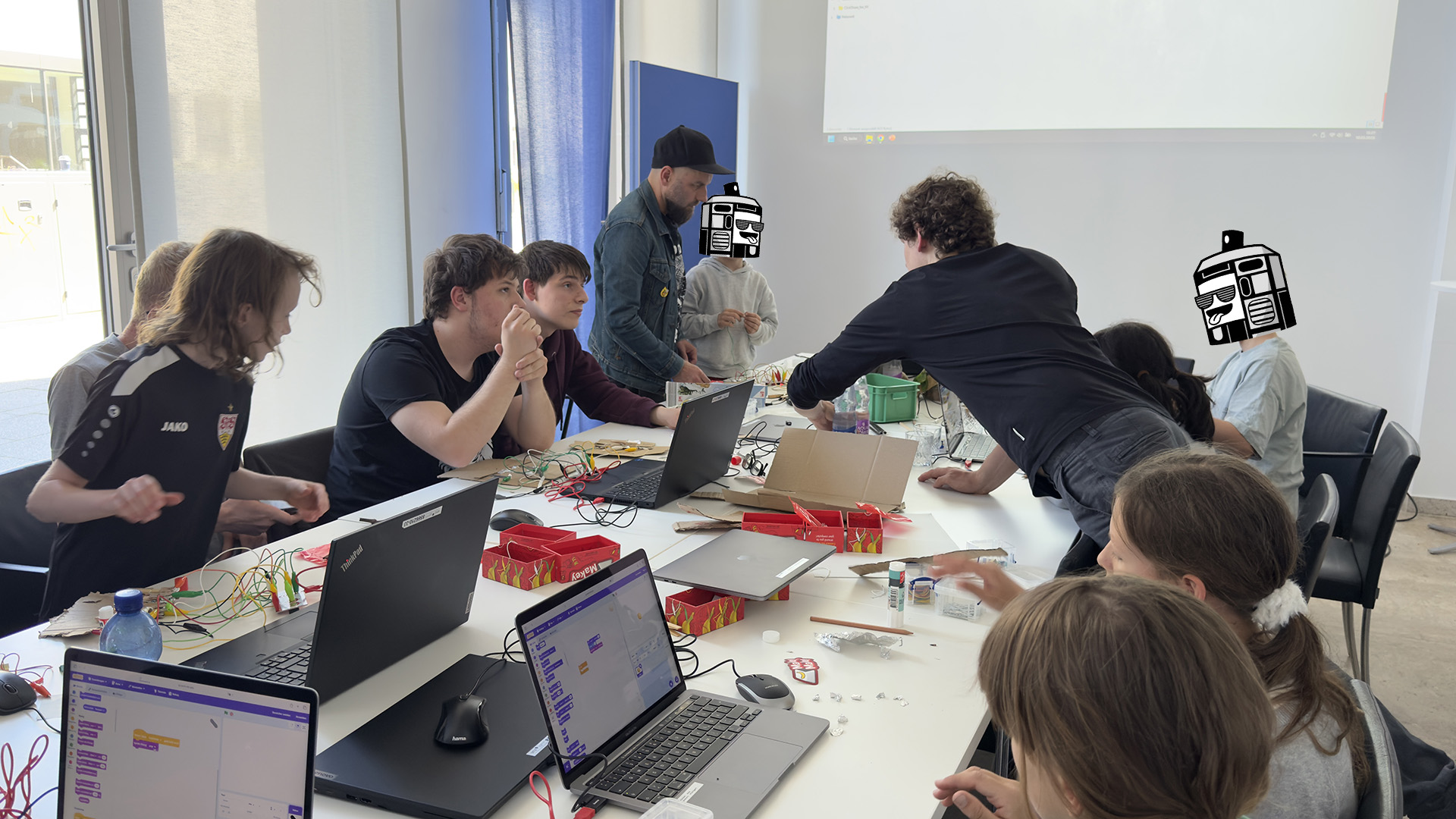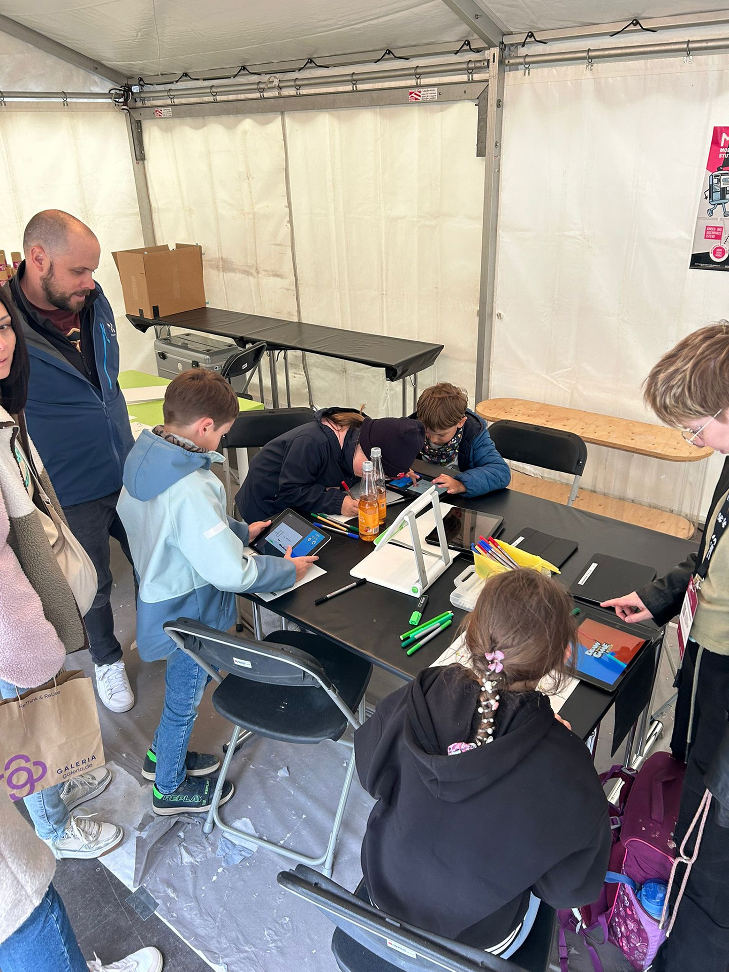 Am 10. Mai war MoMO vor Ort beim ITFS. Dort gab es verschiedenste Angebote für Kinder und Jugendliche. So konnte man mit Filzstiften auf Papier sein eigenes Spiel erstellen, mit einem Tablet eigene Beats, Sounds und sogar Lieder entwerfen, oder mit Kabeln und Pappe eigene Controller zusammenstellen, um ein Wettrennen zu gewinnen.