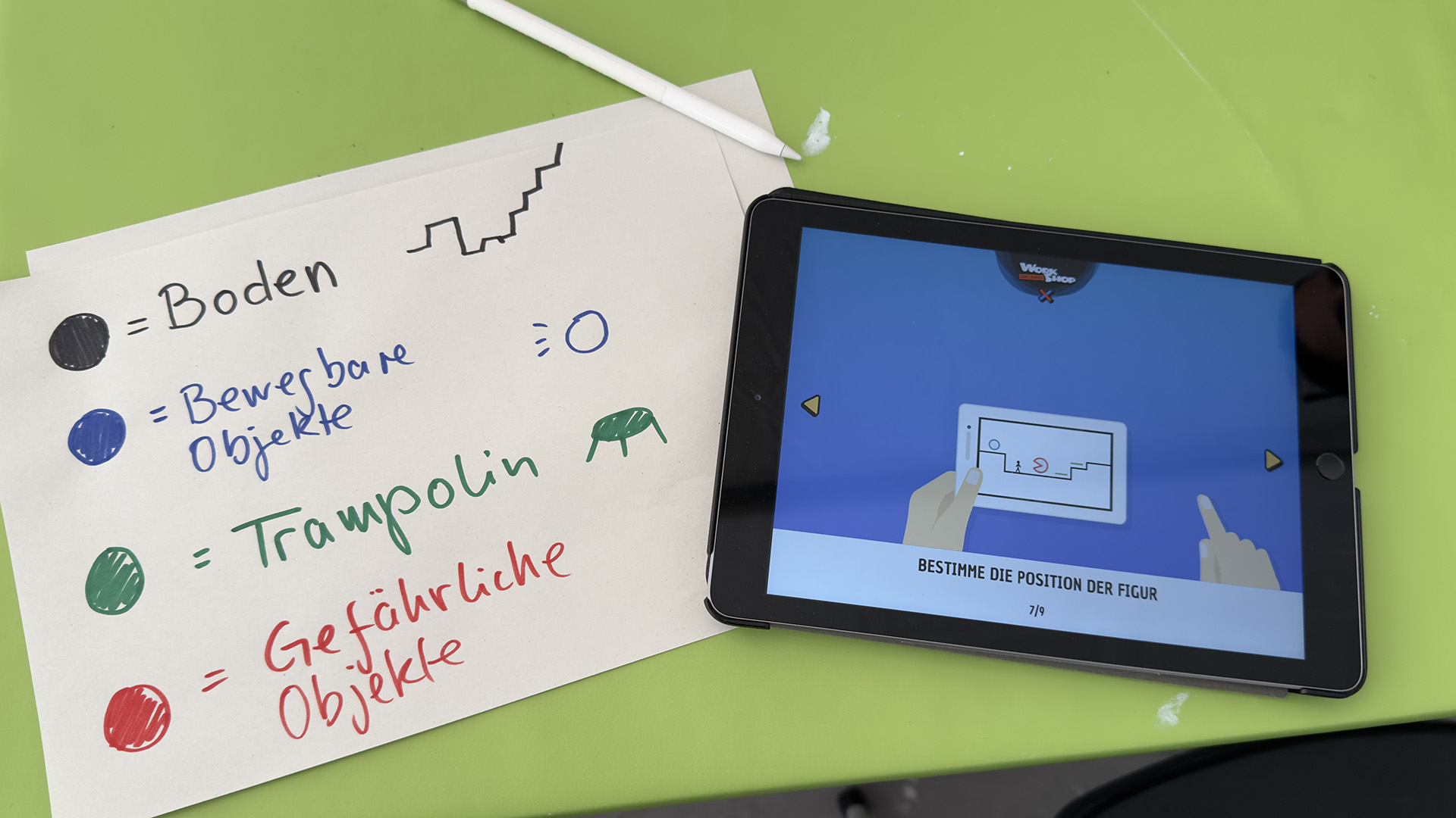 Mit „Draw Your Game“ ist es super einfach, ein eigenes Videospiel zu erstellen. Hierfür zeichnet und malt man eine Strecke mit verschiedenen Hindernissen auf ein Blatt und fotografiert die Zeichnung anschließend mit dem Tablet. Zack – schon hat man ein eigenes digitales Spiel!