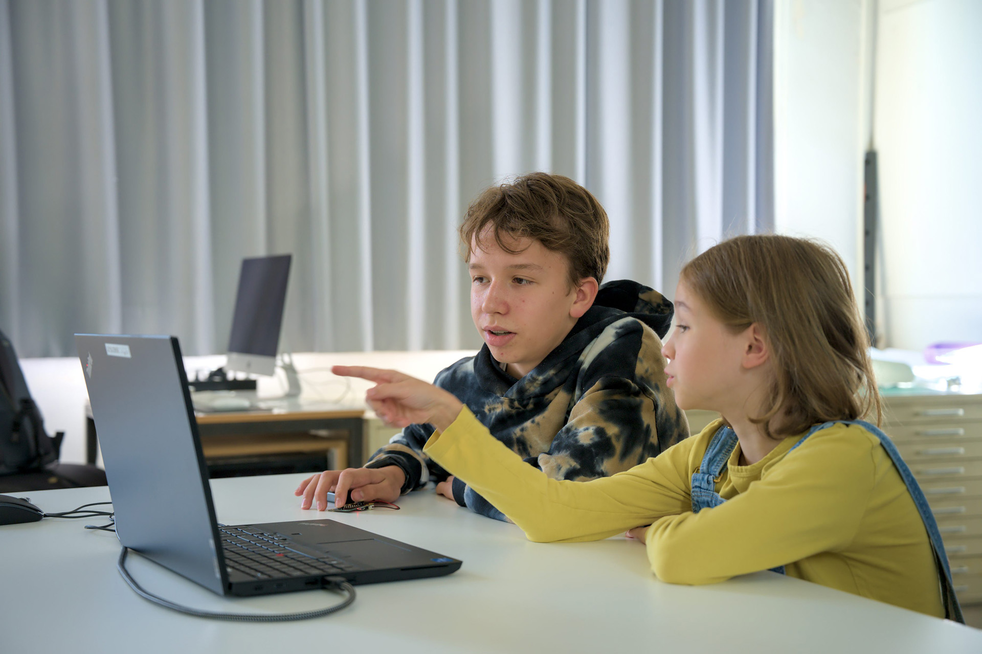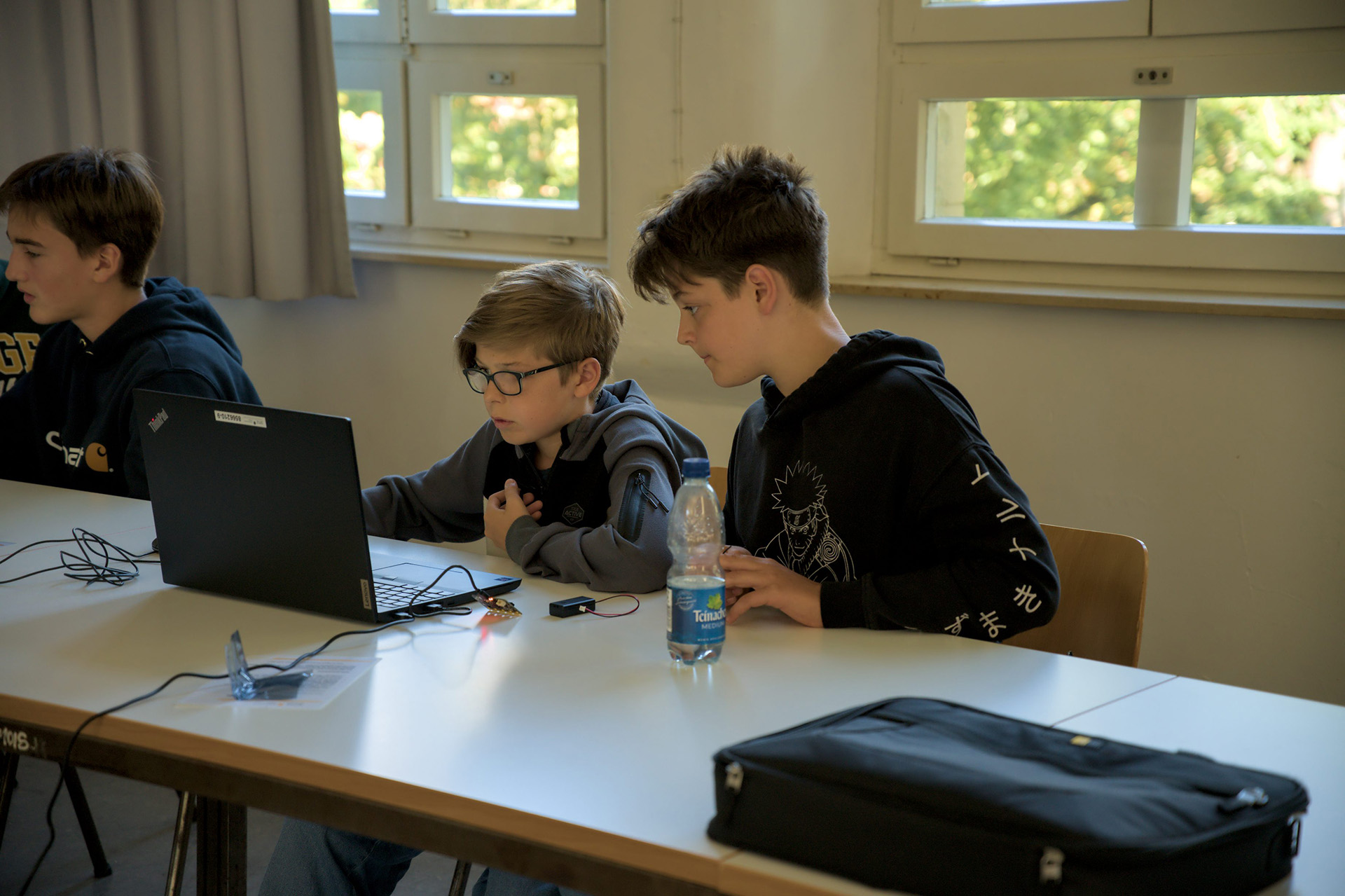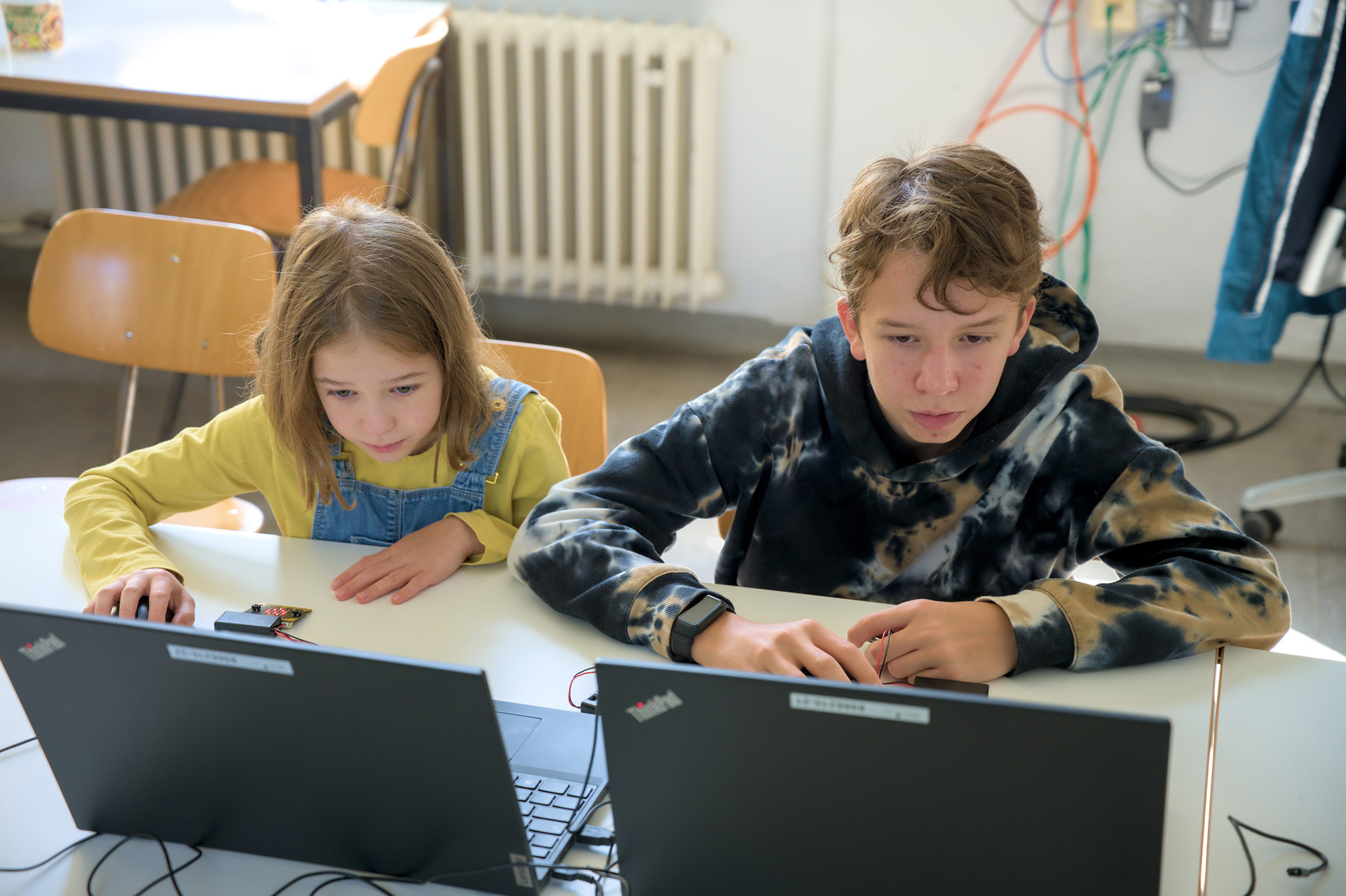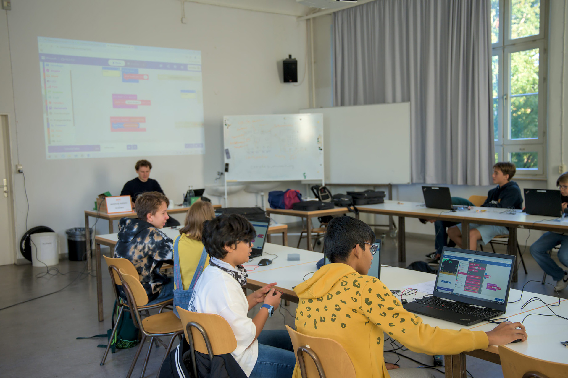 Vom 11. bis 12. September haben an der Merz Akademie Kinder mit Micro:bits programmiert. Diese unscheinbaren kleinen Controller können dabei ganz schön viel. Unter anderem Sprechen, Bewegungen erkennen, Funken oder auch über einen Bildschirm Smileys und Wörter anzeigen.