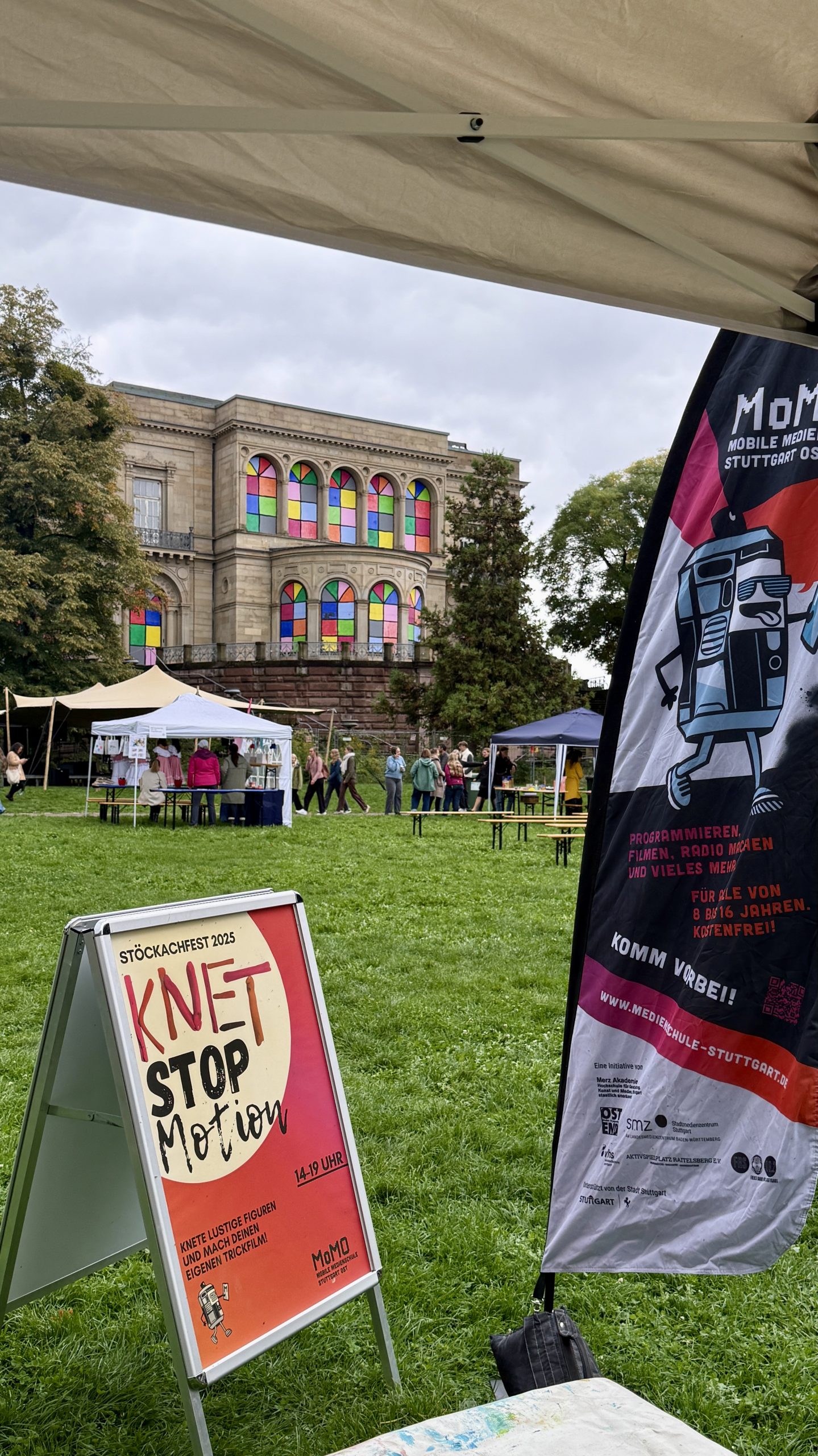 Am 27. September fand das tolle Stöckachfest auf der Wiese vor der Villa Berg statt. Die MoMO beteiligte sich mit einer Knet-Animations-Station. Die zahlreichen Kinder und ihre Eltern kneteten Tiere, Actionfiguren und Fantasiegebilde, dann konnte man Tablet die Figuren zum Leben erwecken und kleine Filme erstellen. Dabei sind richtig schöne Werke entstanden.